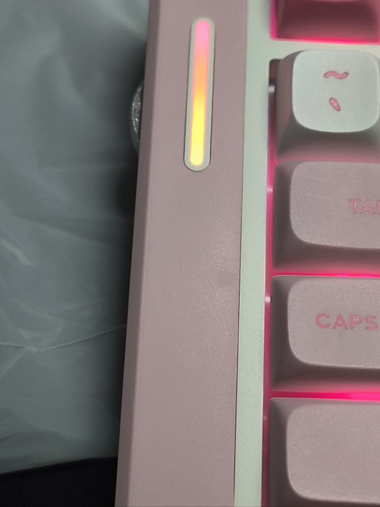 键盘接上电脑,我明显发现有三个轴的按压声音不一样(图上说一个,后续又发现两个),字母区的一按键直接失灵无反应,旋钮伴有奇怪杂声。