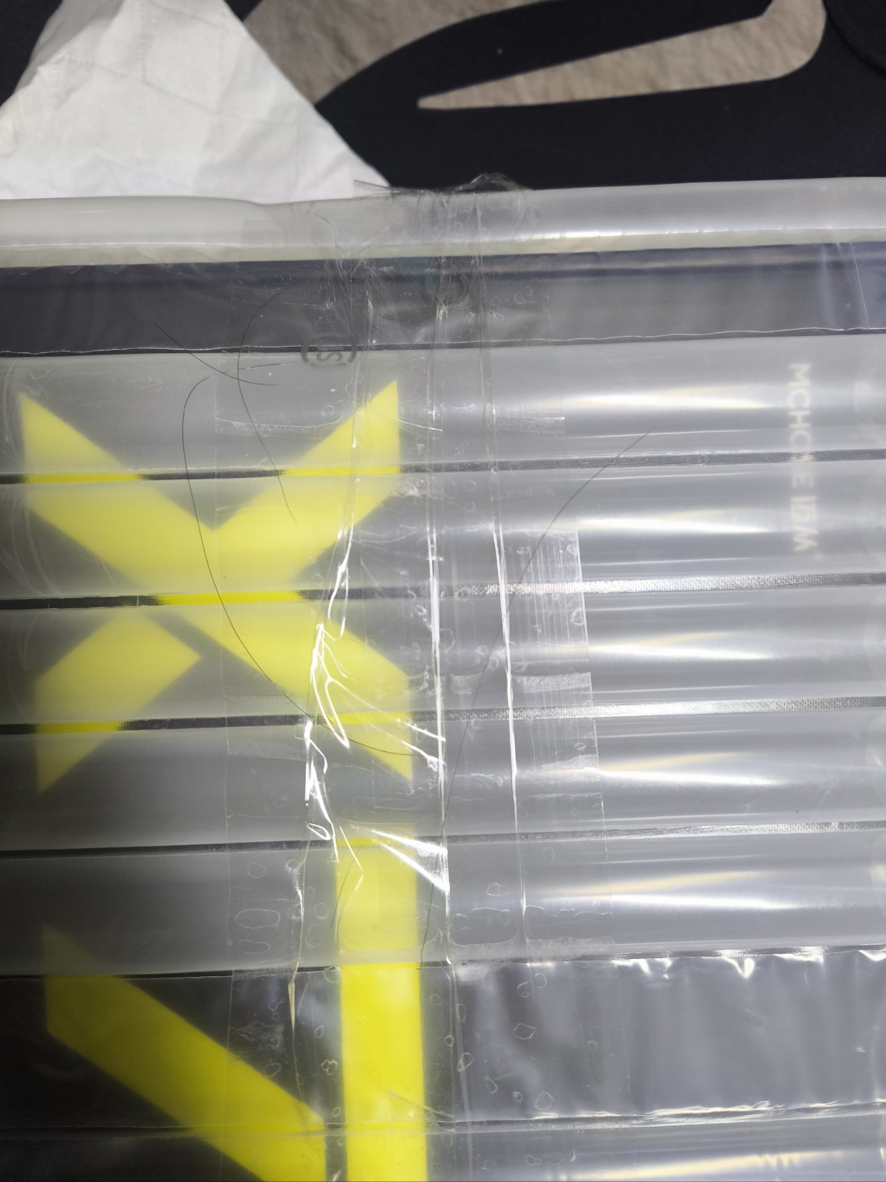 首先是开了顺丰的外包装后,他自己的包装,胶带上面满是他的头发,其中有几根还带有发油和毛囊(为防止引起不适就不发细节了)。我是有轻度洁癖的,但我觉得应该有一部分人就算没有洁癖也受不了吧。