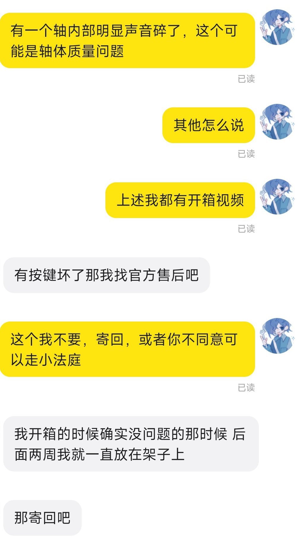事情是因为某键盘本人首发没抢到,想在闲鱼收一个二手的,看了很多家,对比然后选的,价格也是合理范围。