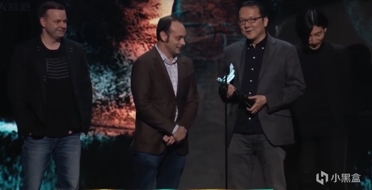 “謝謝!真是感到慚愧。我要感謝,呃,一句話,這感謝屬於我們的粉絲,是他們在支持我們,很久很久。這項榮譽是對開發團隊無數心血投入的獎勵,真的,我只是作爲他們的代表來的這裏。這是一次漫長的旅程,謝謝你們所有人,很高興你們和我們一樣喜歡這款遊戲,謝謝!”