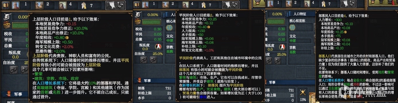 —— 引入了人口機制與省份大小機制,更真實的模擬歷史發展進程與戰爭影響,可以在戰爭中獲取奴隸人口。