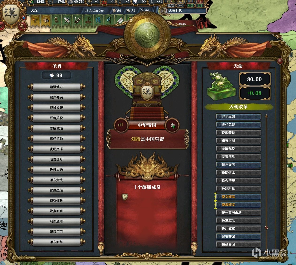 (2)大秦:選擇漢末劇本,以公孫述軍開局,奪取大秦祖地,建立秦國。擊敗大漢,宣稱新的大秦帝國,向波斯以及羅馬進軍。