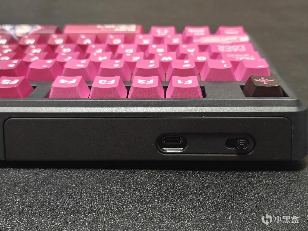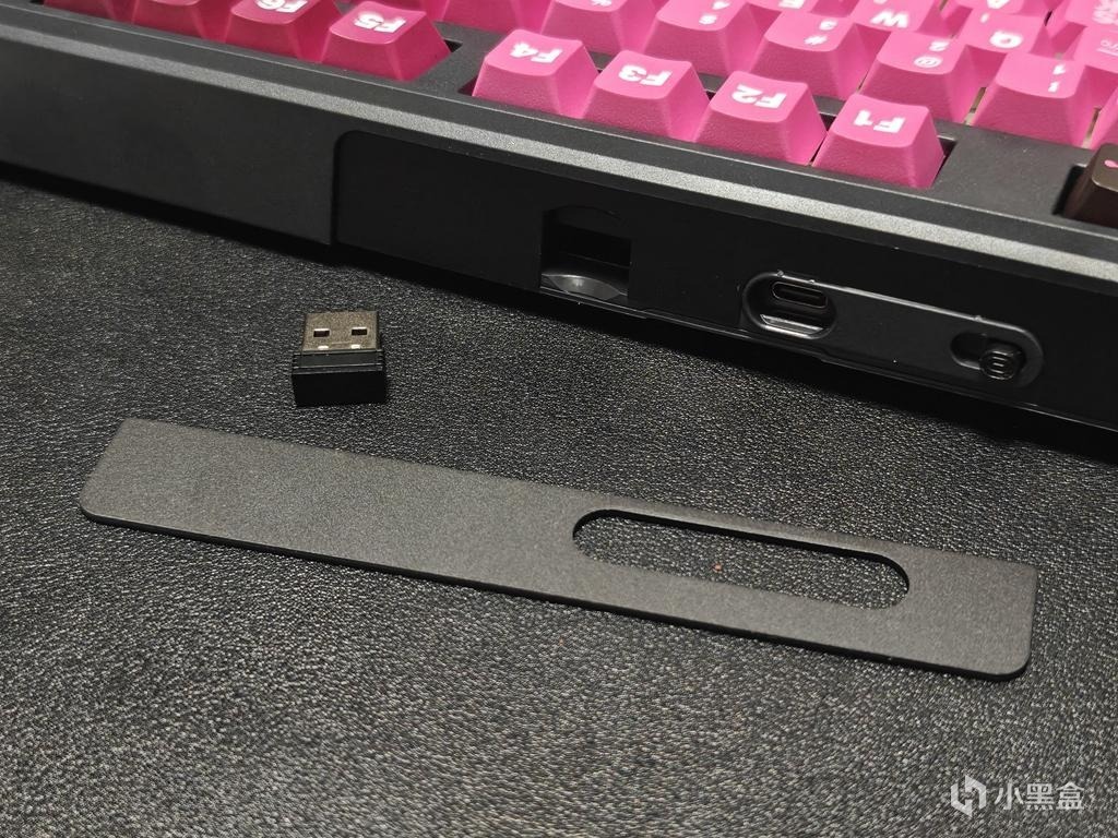 键盘左后侧分布了USB-C接口,三模切换开关以及接收器收纳仓;