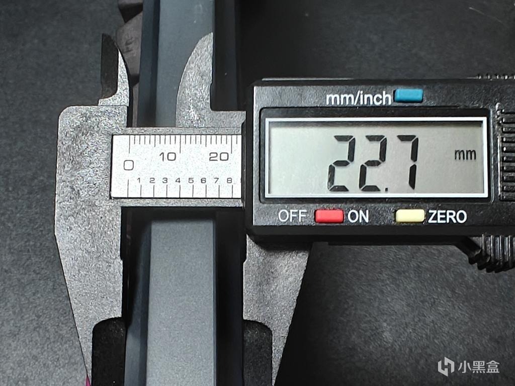 实测这款键盘的前高仅22.7mm,不用碗托也可以直接上手使用。