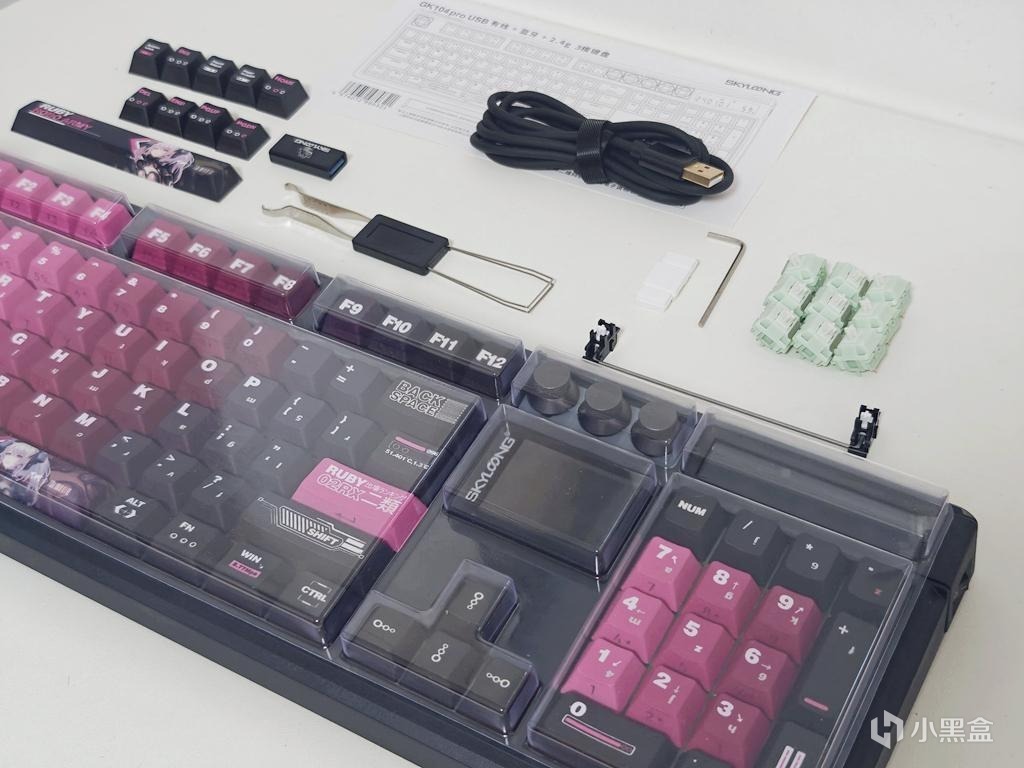 虽然目前量产键圈已经非常卷了,但有些品牌仍旧坚持“客制化精神,不断创新的理念”。最近入手了一款来自SKYLOONG.小呆虫的104配列机械键帽GK104Pro,这把键盘与众不同的地方在于不仅采用了双屏幕设计,还加入了分裂空格、旋风热拔插旋钮等设计,最关键的时候的是还做成了可替换模块化设计,非常有趣。下面我带大家一起来看看这把小呆虫GK104Pro吧。