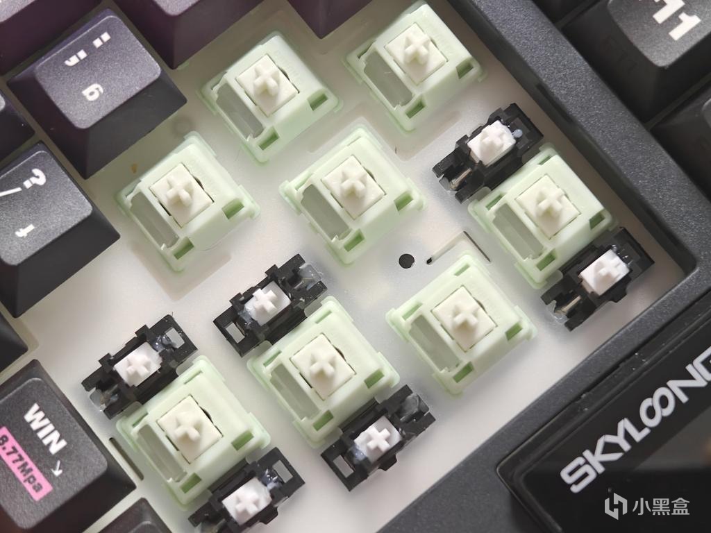出厂状态采用了分体空格,如果有朋友不习惯也可以替换成单个长空格,非常方便。PS:卫星轴下方有个卡扣用镊子一挑即可取出来;