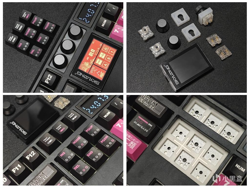 小呆虫GK104Pro最有趣的玩法就是它的模块化设计。像彩屏和旋钮都支持热拔插,并更换成普通按键,彩屏四周有卡扣,用力即可拿下来,旋钮可以通过附送的拔键/轴器取下,拔的时候记得直上直下慢慢地拔出来。
