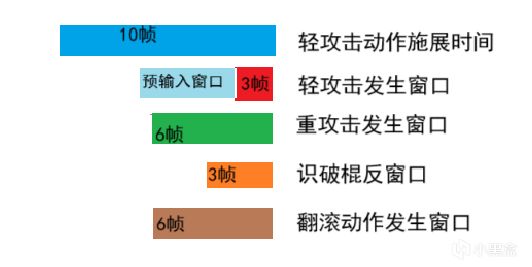 輕攻擊動作銜接窗口,就是“切手技”識破棍反的窗口時間,且無預輸入,這同樣導致了“按鍵感覺被喫了”的情況,那假如,“按鍵沒有被喫,成功釋放出“切手技”呢?”,也不夠好,因爲沒有預輸入,使按鍵輸入變得不足夠可靠,在同樣的戰鬥情況下,玩家的按鍵心理邏輯就變成了:“先確認輕攻擊的動作銜接窗口時間,再確認BOSS的棍反時機” ,這樣的兩步心流傳遞。