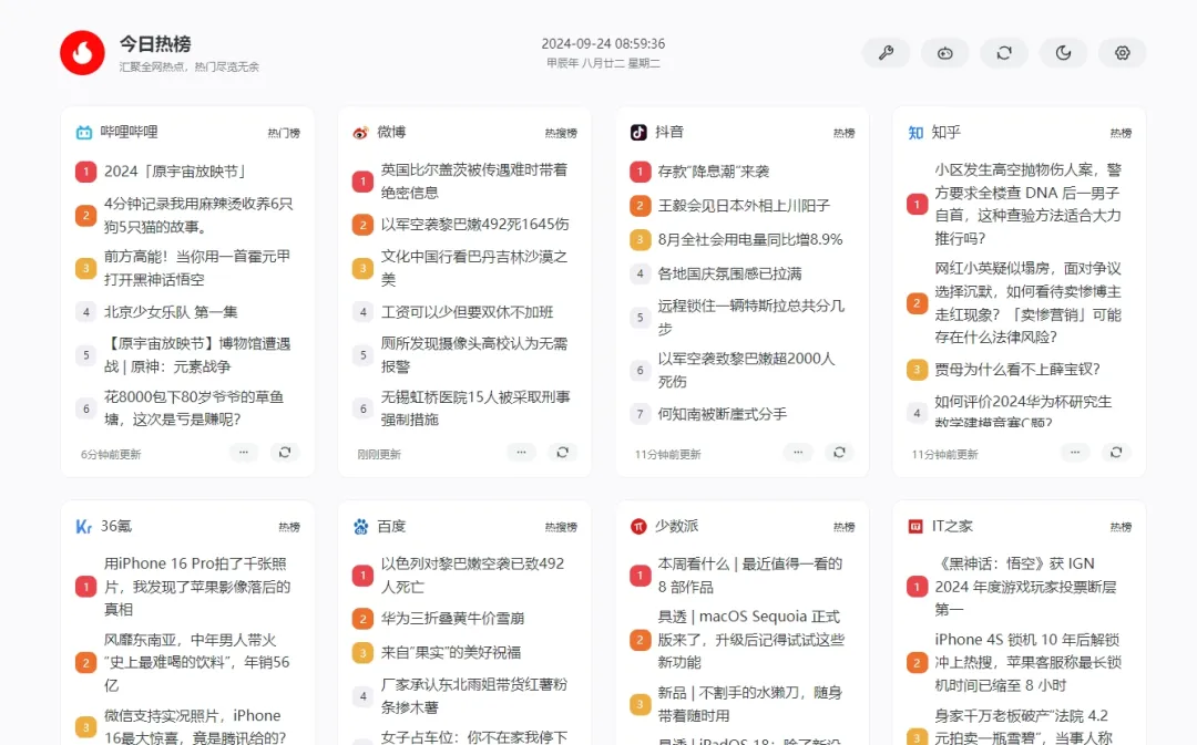 一款匯聚了各大平臺熱點熱榜內容的網站,可以根據平臺選擇需要查看的熱點內容,同樣也是一款網站,無需下載任何軟件,打開無需註冊登陸就能使用,簡直就是上班摸魚神器。