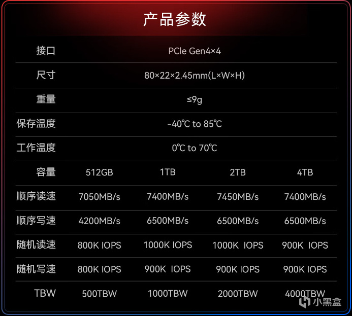 支持PCIe 4.0,帶獨立緩存,TLC 顆粒。(500G PDD參考價435元,1T PDD參考價:559元,2T PDD參考價:1049元)