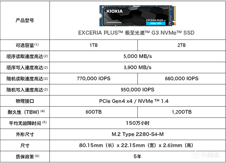 優點:鎧俠原廠TLC顆粒,帶獨立緩存壽命更長。