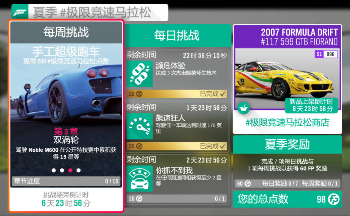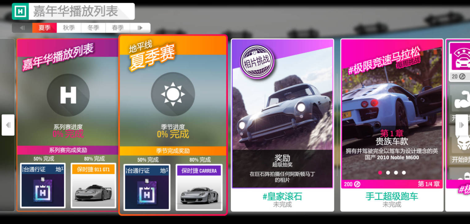 夏季賽進度獎勵爲50%完成地平線後臺通行證和80%完成2003款保時捷 CARRERA GT