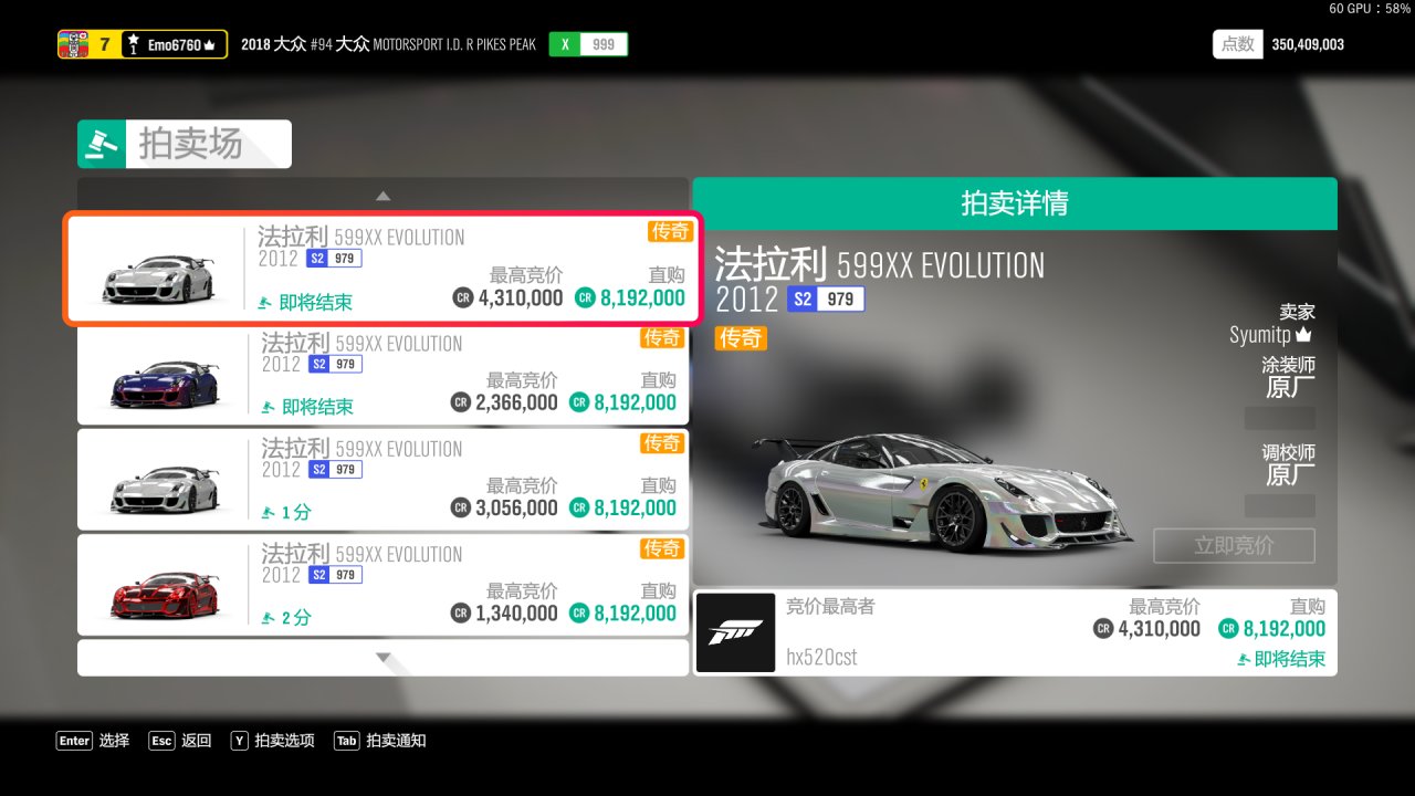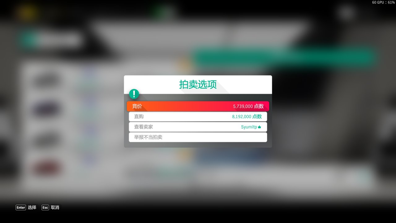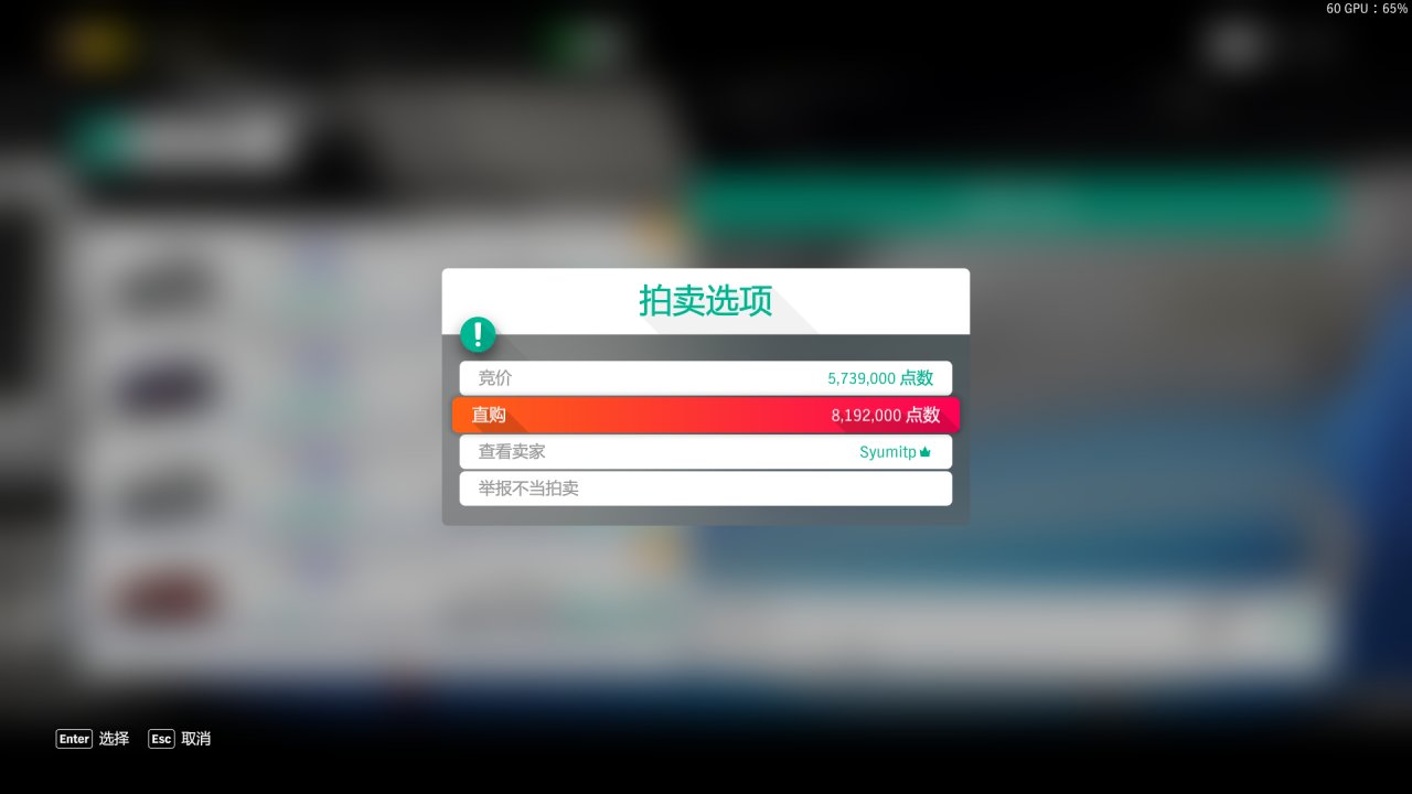 七,手柄和鍵盤都是按y鍵 按y鍵 按y鍵進入拍賣選項,一定不要手柄a鍵或鍵盤迴車進入拍賣詳情,等你加載完詳情,車都賣出去八百年了