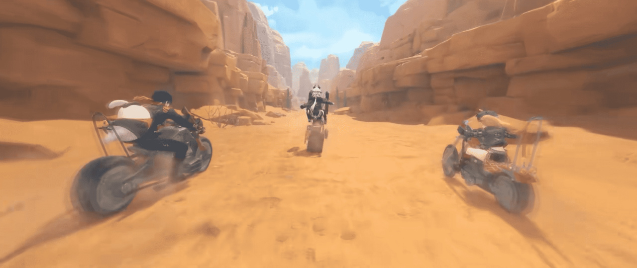 1.2新章節的故事正沿襲了一貫風格,主角兄妹二人來到新地圖外環,幫機車族卡呂冬之子爲即將到來的火獄騎行大賽做賽前準備。新地圖外環是地處新艾利都核心市區外,無憂無慮的自由之地,充滿濃重西部公路片風格的戈壁荒漠,讓已經習慣了前幾章都市生活的玩家眼前一亮,開始期待新故事的展開。