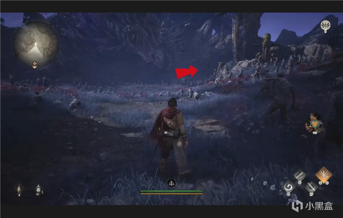 我在來的路上看見另一條路有一個沒有點亮的篝火,這個篝火如果要過去的話也是需要工作人員在旁邊陪同的,而這個去往這個篝火的路上有一個意義不明的坡度,這個遊戲裏是沒有跳躍的,我們下來了就只能通過篝火傳送回去,這個坡度就顯得有些多餘,我覺得合理地解釋就是,試玩地區域是要靠後於這個坡度下面的區域,也就是說我們正常的流程第一次應該是先走坡度下面這區域的路看到坡度無法到達或是坡度上有發光的東西,我們選擇繞路尋找上去的方法。走到篝火處發現表裏世界有不同的怪物,比如這個宣傳片裏的水母是在裏世界裏的,這個水母算是半個機制怪,可以正常打也可以靠機制殺。