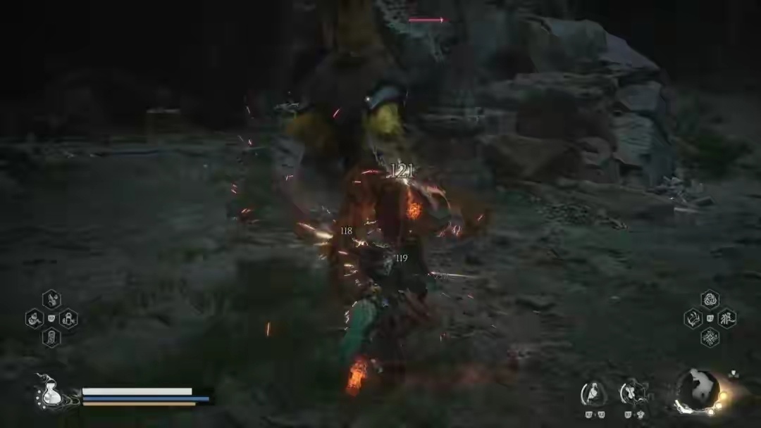 其次,銅頭鐵臂雖然用起來很帥,但很多BOSS的招式和攻擊它都擋不了,玩家還需要在戰鬥中試錯。反觀聚形散氣,它不但在刷圖的時候有用,可以避開一些比較難的路段,而且打大部分BOSS的時候還可以用它來喝酒,不用怕被打斷。