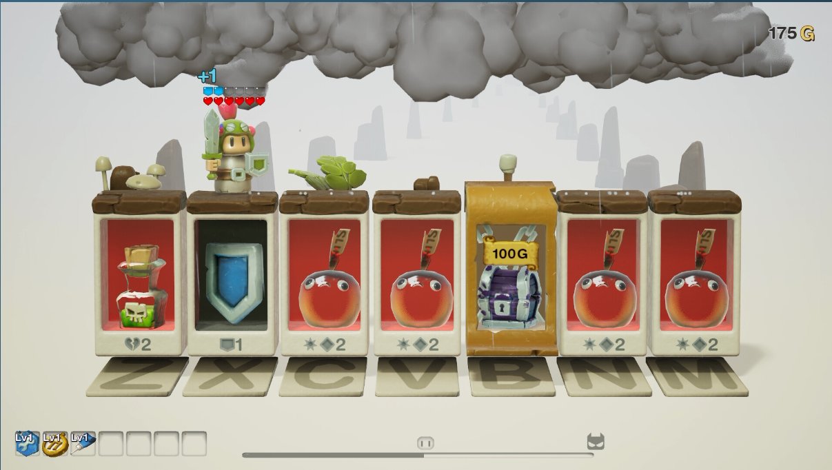 這款遊戲最特別之處在於——雖然它是一款肉鴿遊戲,但其實最重要的制勝手段是你的手速!看似老虎機,實則“鋼琴手”,玩家控制的主角在七個欄位組成的路徑上向前移動,七個欄位分別對應鍵盤上的一個按鍵,玩家可以在主角走到某個欄位之前依靠自己的手速來快速重置那個欄位裏的內容,使其對主角有利。如果ROLL出來負面的,就多ROLL幾次,所有手速很重要,如果同時操作幾個欄位的話就直接變成“鋼琴模擬器”了,玩起來很帶感!擔心手速不夠?沒關係,你可以讓你的朋友來幫忙,兩個人操作同一個鍵盤,有默契就能無往不利~