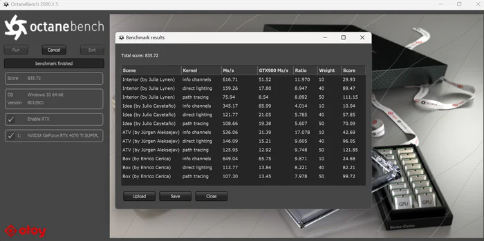OCTANEBENCH测试分数为835.72