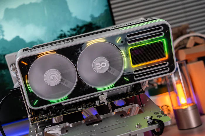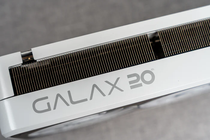 显卡的顶部靠近挡板一侧这里是影驰20周年的logo