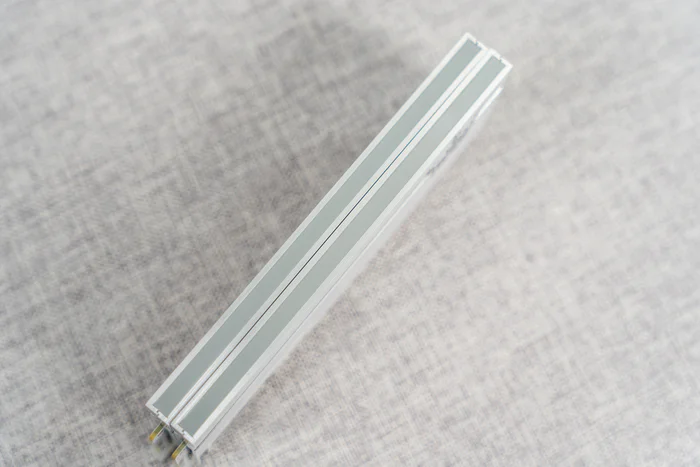末端的散热鳍片,也是平整的设计,另有中间长方形的凸起增加散热面积