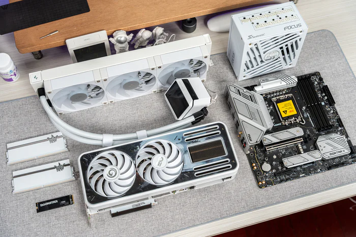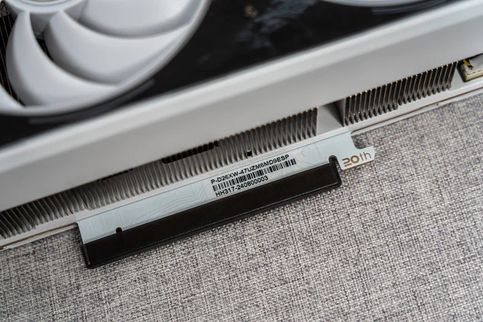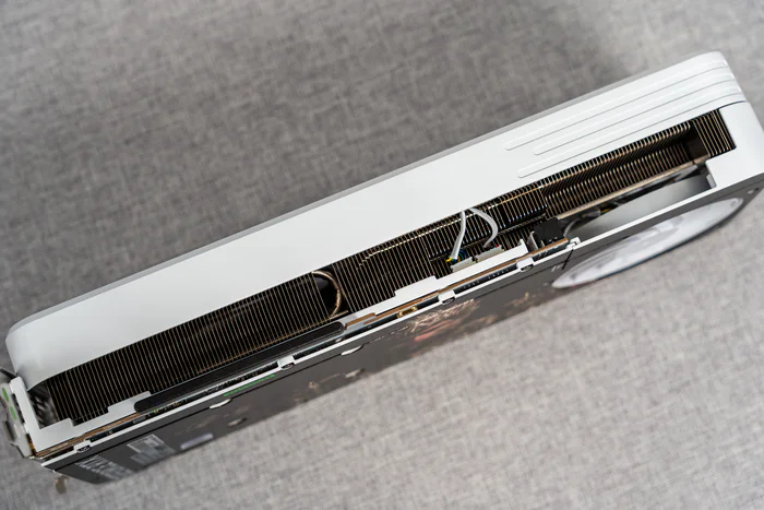 纯白散热片,中间一条银色条纹装饰,并有银色HOF 名人堂LOGO进行装饰,连PCB也是纯白设计,具有10层PCB