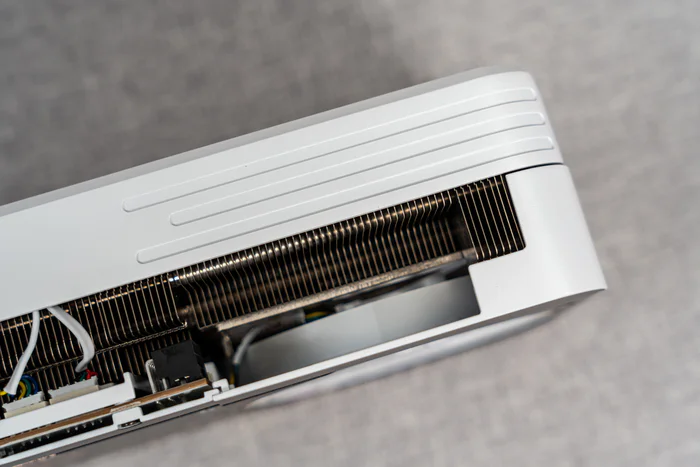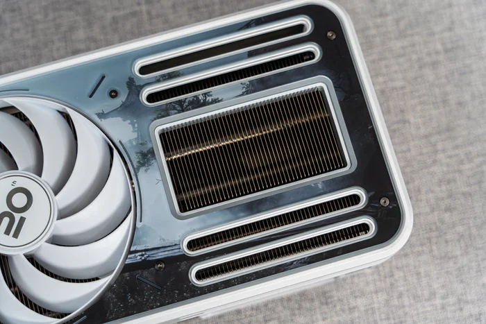 散热器外壳内侧有很多灯带设计,以及两把10cm静霜风扇
