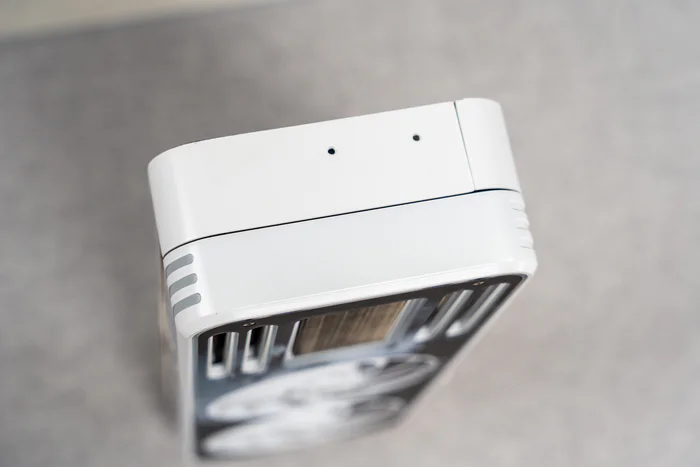 背板底部一片可拆卸磁吸盖板下隐藏的12VHPWR接口,可以非常巧妙得将原本设计在显卡顶部的12VHPWR接口隐藏起来,同时也是对现有显卡顶部这一大捆子线缆最简洁的隐藏方式