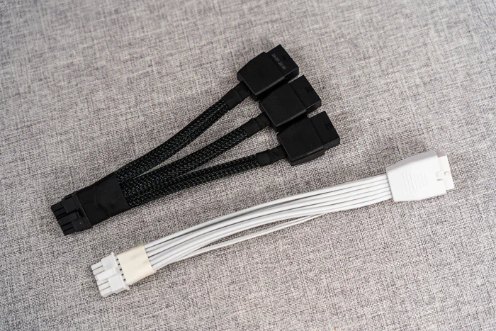 配件有三合一的12VHPWR线缆,以及一条纯白的12VHPWR延长线