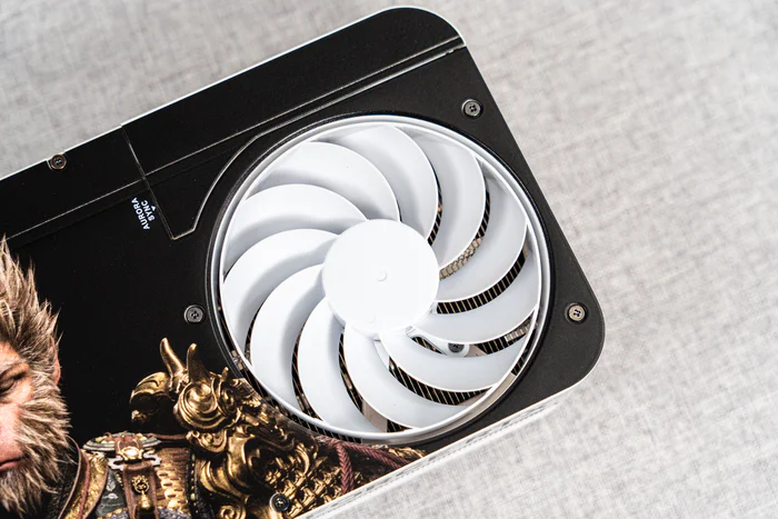 显卡的背板设计了黑悟空图案,也是特别纪念版的外观加成,右侧的反叶风扇与FE散热器设计相似