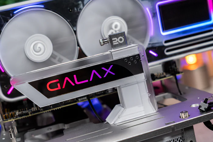 显卡支架也与影驰的星曜支架有些像,但更平整,应该是与20周年一致的平整设计
