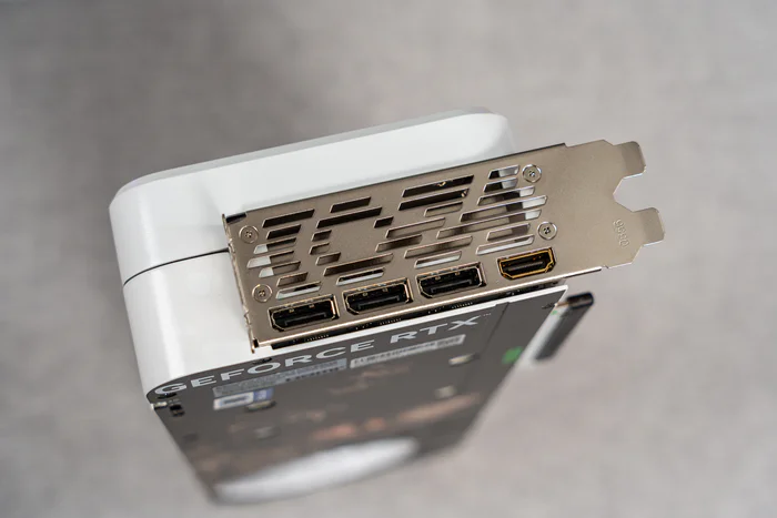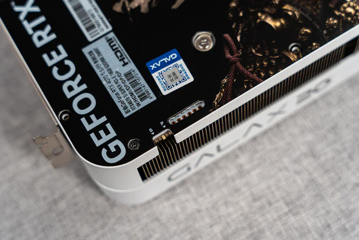 显卡的挡板,依然是40系标配的3DP1.4A+1HDMI2.1A接口,只不过这个HDMI接口是金色的,搭载HDMI信号增强芯片,可大大减少HDMI信号在传输上的损耗和反射