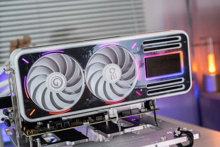 运行中的影驰RTX 4070 Ti SUPER特别纪念版显卡