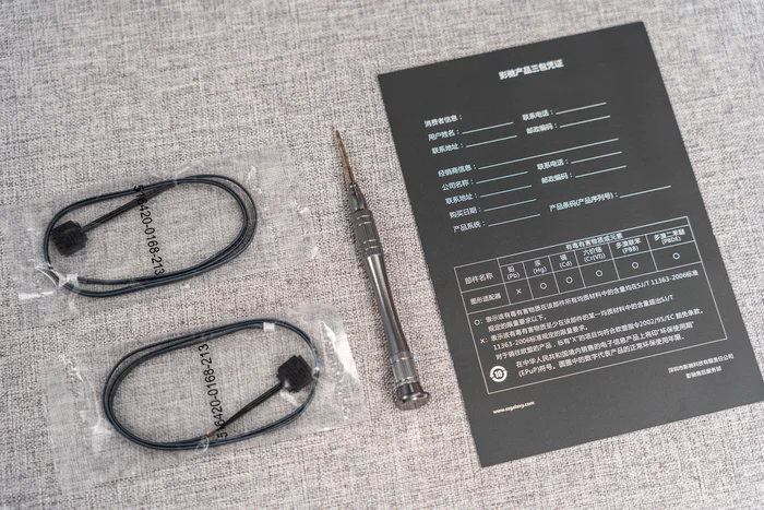 配件还有两条用于连接主板ARGB接口线缆,以及一把用于改装显卡的螺丝刀,以及一张三包凭证