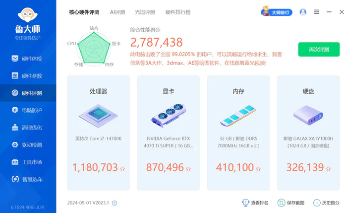 鲁大师测试整机性能278万分