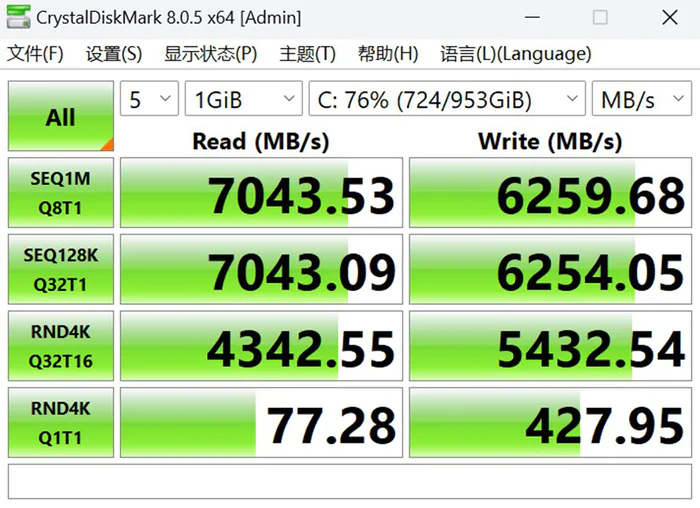 影驰星曜7000PLUS的CrystalDiskMark测试成绩