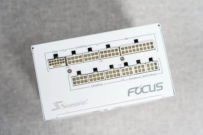 海韵FOCUS经典主流电源的V4版本,经典的主动式PFC+全桥LLC+同步整流+DCDC结构的电源,在制造工艺上采用CHROMA MES 先进制程并采用国际主流品牌功率元器件与IC芯片、全日系品牌高品质电解电容与固态电容,此次新版更新还采用了OptiSink高效导热技术和模块化线路设计使得线路体积缩小48%、导热系数提升8倍使得电源内部散热空间与效率获得显著提升。当然其原有特点也依然保持一贯的水准,其一,原生12V 2x6 16-pin接囗及全套压纹模组线,16AWG线径和9.2A耐高电流镀金端子;其二是14CM的小巧机身下仍使用13.5cm的FDB风扇来保证静音与散热效率;其三采用了第4代创新数字IC智能温控技术,数字IC监控实时温度及负载,自动调节风扇转速,更精确控制风扇启停/启转,0dBA模式延长风扇使用寿命,兼具散热与安静体验;其四采用的海韵自家高端电源设计的SDP智能双重保护更安全,高于intelATX3标准的200%瞬时峰值功率;其四十年质保。最后,V4新版FOCUS电源的白色限定版终于纯白了,电源本体包括所有模组接口、电源接口、电源开关、散热风扇、全套白色压纹模组线的胶壳以及配置的电源线也终于全部白色了。