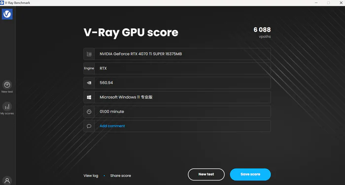 V-Ray测试显卡RTX分数6088