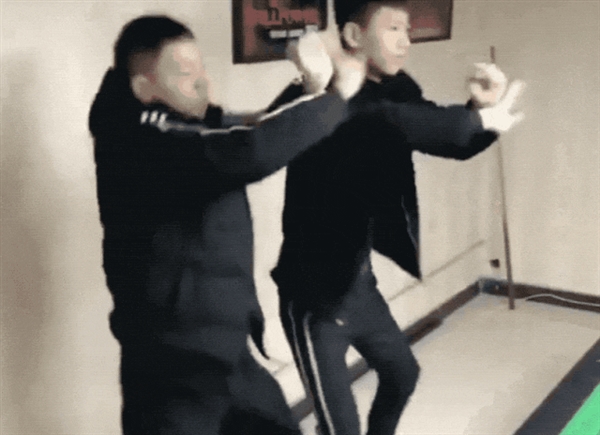 現在,把你倆分開一定步數,他還是跟着你搖,你先以一個正常節奏開始花手,哥們看見以後就也開始花手;然後你突然二倍速,讓花手好似螺旋槳原地起飛,哥們看見以後愣了一下,也跟着你起飛;