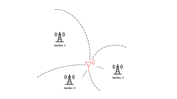 我們在初中二年級學過,知道三個點的位置和座標,以他們離同一目標的距離畫圈,就可以定位到目標的位置。