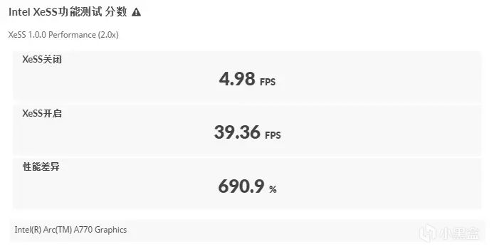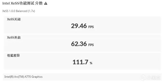 ▲在实际测试中,2K分辨率,intel ARC A770在3D Mark intel XeSS 功能测试中能够提供约29 FPS的原生帧率,而在XeSS平衡档位下,测试平均帧数为62 FPS,可见在平衡与性能档位,intel ARC A770显卡能在2K分辨率下提供流畅的光追游戏体验。
