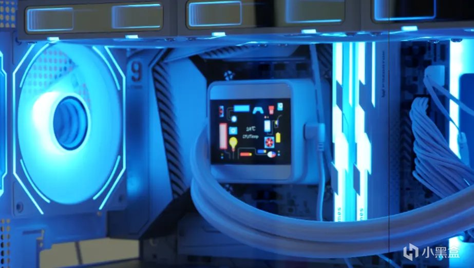 ▲水冷使用的是鑫谷 昆仑 山海,他采用了三相九极马达的独立水泵架构与0线材的积木模组风扇可玩性很强。