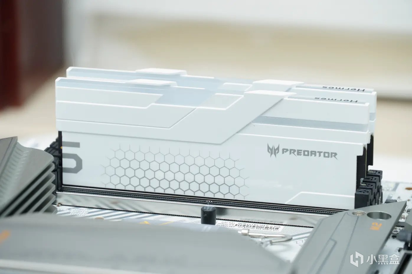 ▲本次测试内存使用的是宏碁掠夺者Hermes冰刃 7200MHz 16GBx2,它采用了SK海力士的A-Die颗粒,超频潜力非常强劲,而且作为宏碁掠夺者的旗舰内存,供电、散热方面也都十分可圈可点。