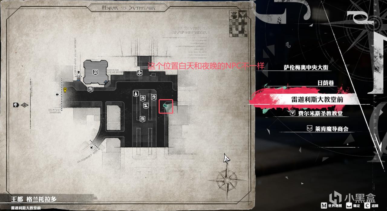 需要玩家们在夜晚的时候前往雷迦利斯大教堂,然后在中间的集市里面就可以看到这位夜晚的NPC,直接花钱购买就行,地图的位置我标注在了下面的图上。