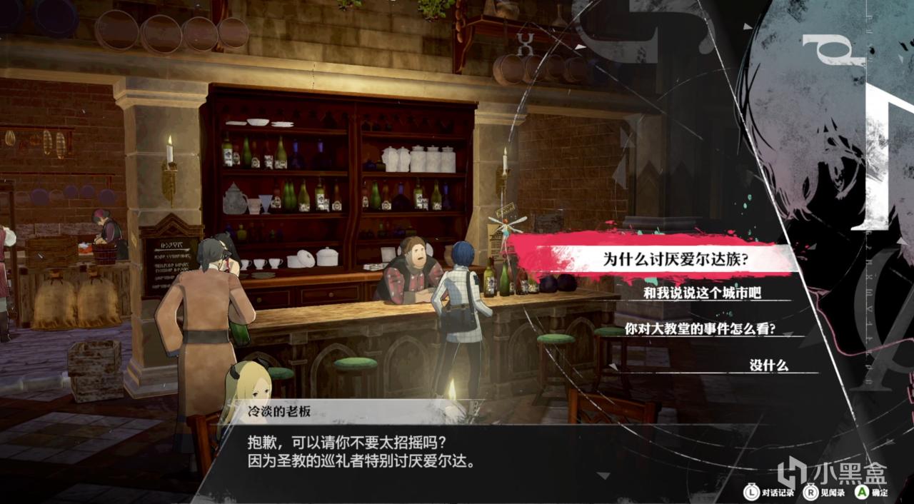 然后进入酒馆以后直接直行前往柜台,和柜台的老板NPC进行对话,对话完成以后直接转身前往门口,记住这个时候一定不要直接出门,而是看向门口的另一个女服务员NPC,与其对话就能够收获到其充满歉意的礼物。