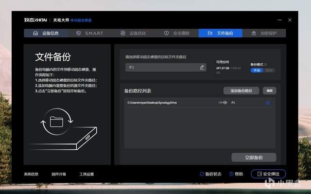 对于有备份需求的用户,也可以通过「致态天枢大师」将电脑本地的文件直接备份到致态灵·先锋版移动固态硬盘当中,比如我就将 SynologyDrive 的云端备份增加了一个硬盘内部的冷备份,万一 NAS 和 PC 哪天同时抽风,就可以通过 PSSD 找回关键的文件了。