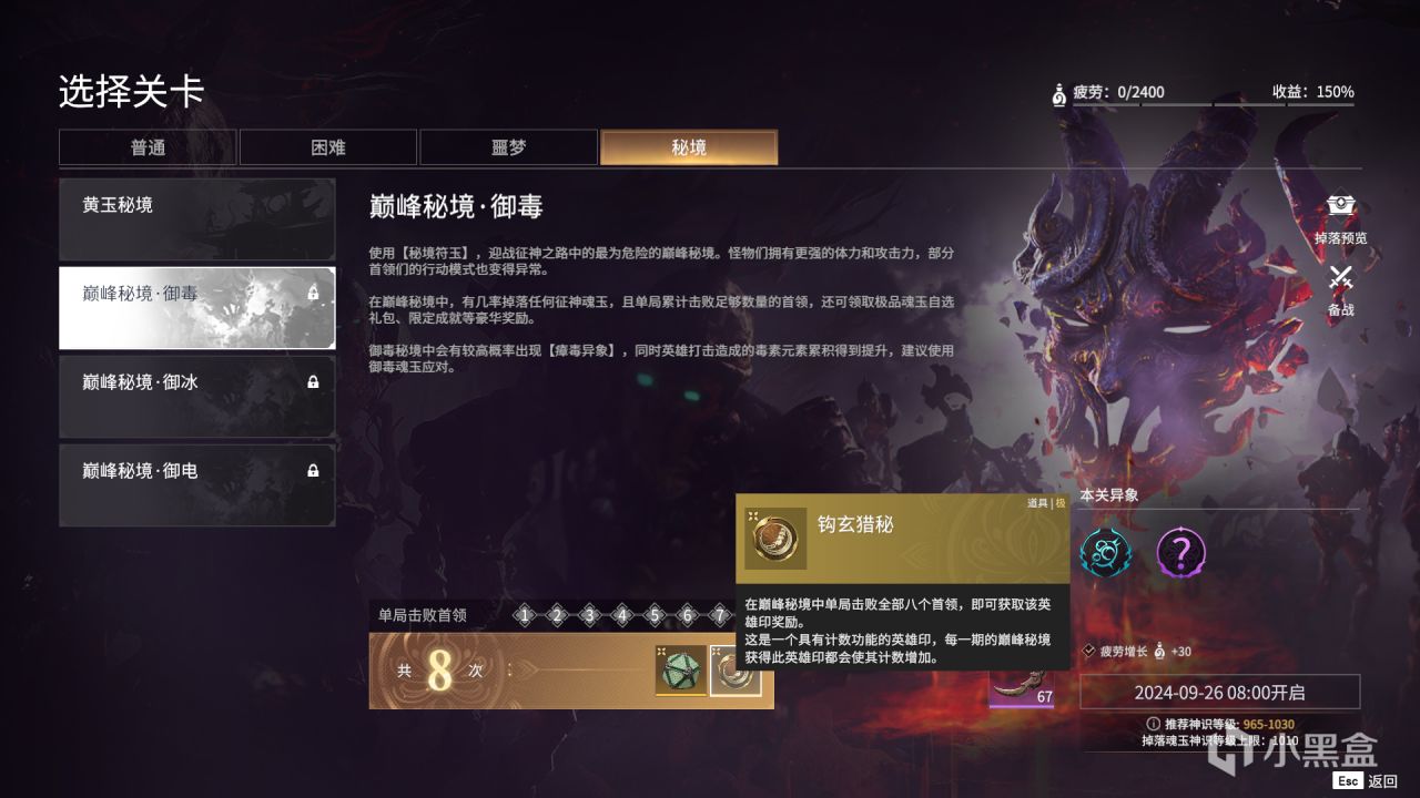 巔峯祕境不同於普通黃玉,boss變得更強,會有全新招式加入,簡稱詭•boss