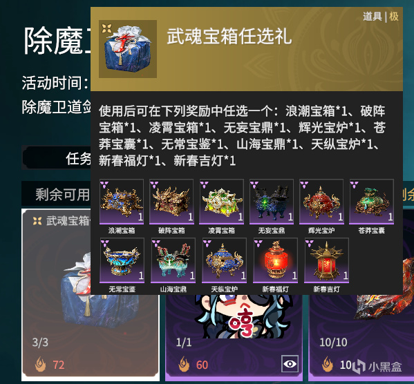 可通過完成任務兌換三個箱子和崔三娘表情包