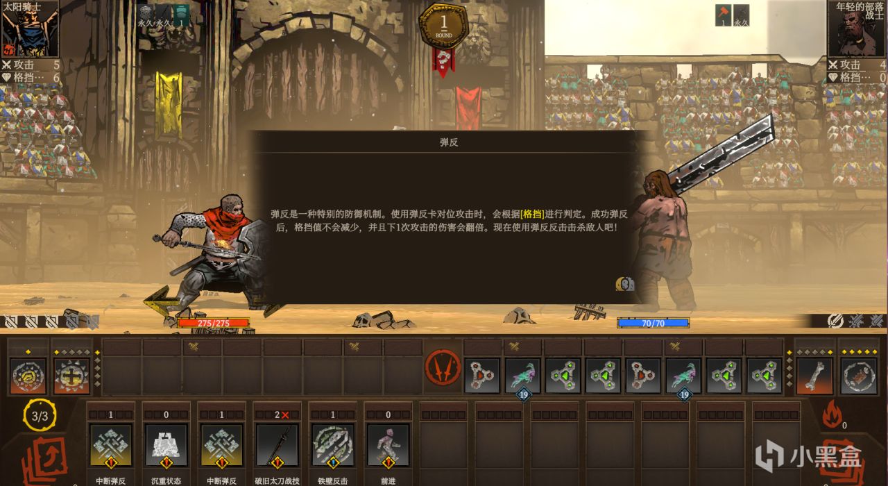 反击卡会在格挡成功后打出,无需手动打出,弹反卡片打出触发后格挡不会消失(能否成功弹反根据格挡值进行计算)