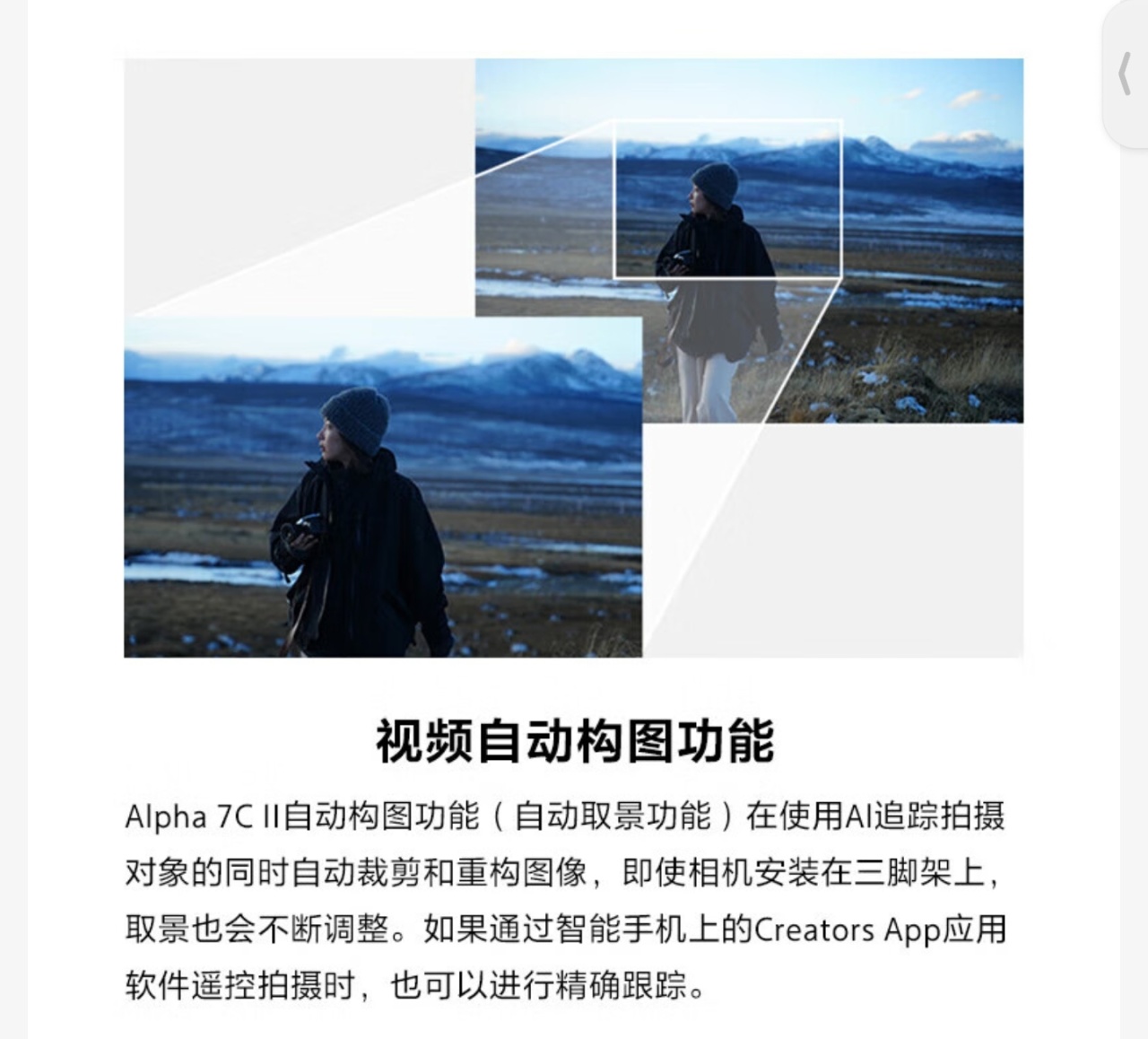通过 AI 芯片的加持,在视频追焦,自动构图上也很强,还支持呼吸补偿(特定镜头)