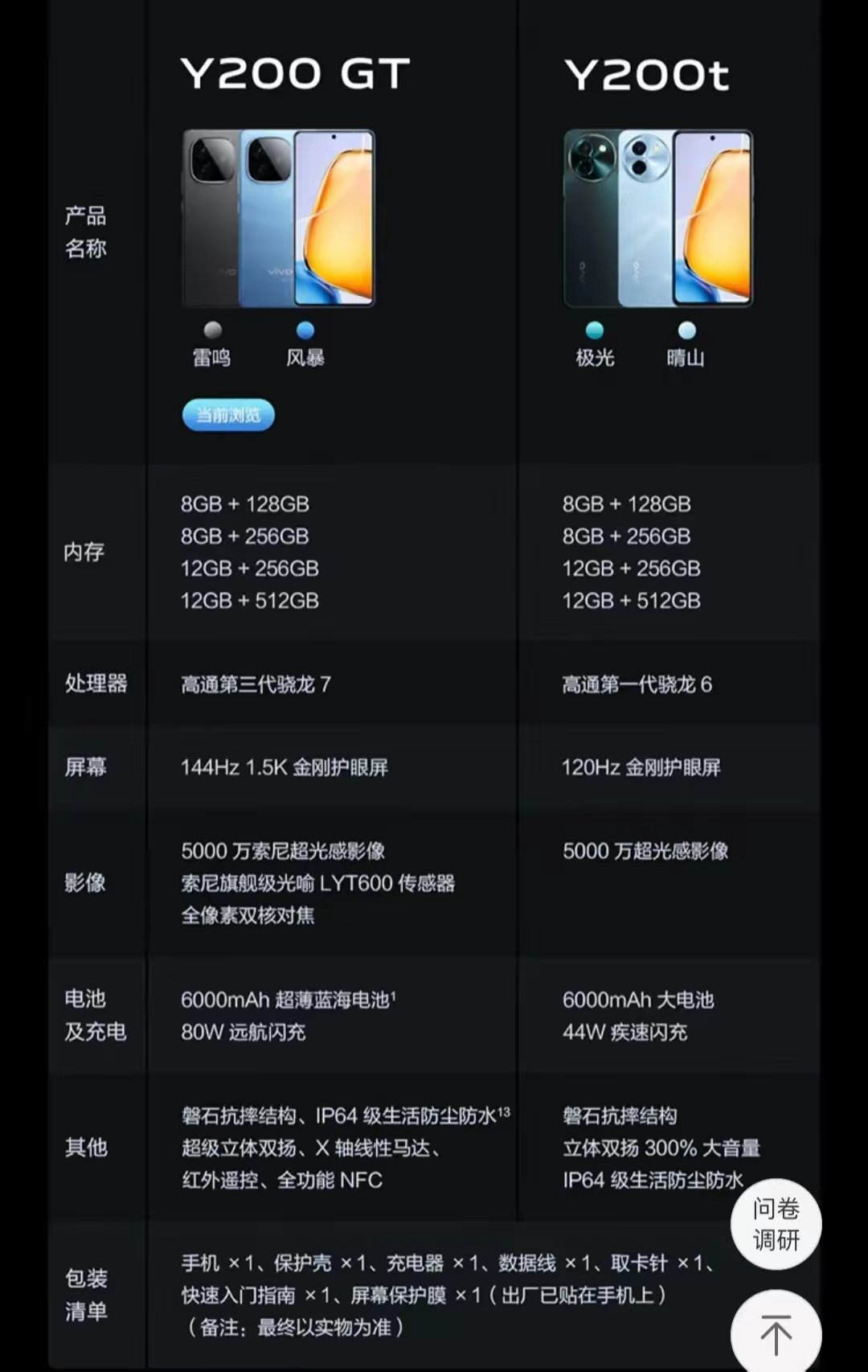 曾经正准备给父母挑两台手机,突然刷到一个蓝厂的y系列手机,vivoy100t,不得不说,看完配置后我懵了,因为配置版型完全和iQOOz8一模一样,之后我就去网上搜了一下,发现原来换名不换配这种事蓝厂没少干啊。根本不止有iQOOz8和vivoy100t这两兄弟。